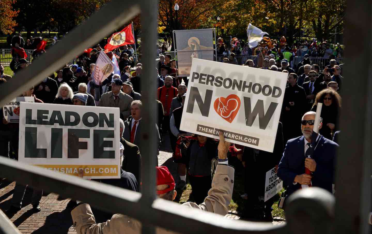 Demonstrators at the Parkman Bandstand during the National Men’s March to Abolish Abortion and Rally for Personhood on November 1, 2025.