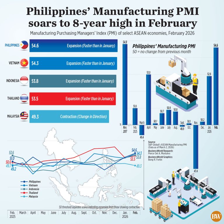 “The Philippines manufacturing sector has had a solid start to 2026, with February marking its strongest performance since late 2017,” Maryam Baluch, an economist at S&P Global Market Intelligence, said in the report.