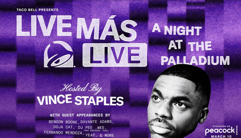 The fast-food giant is bringing its most ambitious showcase yet to life with Live Más LIVE: A Night at the Palladium, a one-night-only event taking over the Hollywood Palladium on March 10. The show will be hosted by Vince Staples and will stream exclusively on Peacock, packed with surprises and special guests appearances from other celebs.
